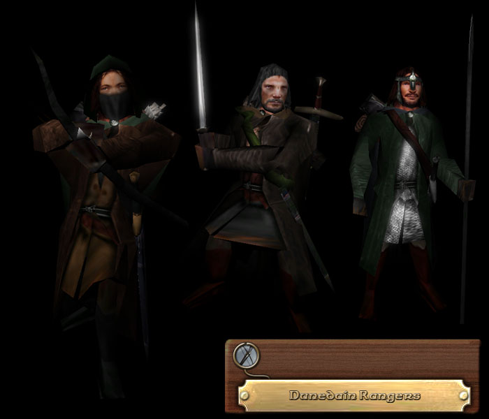 The remnant of the nobility of the Northern Realm which was all but destroyed following the War of Arnor and Angmar, the Rangers of the North are a secretive and quiet folk, grim in appearance, manner and dress, wandering and solitary warriors preferring secrecy and guise from open confrontation. Tall, lordly and worn as weathered rocks, each of them could trace their lineage back to the Numenorean nobility under Elendil. They wear little to no armour and carry few weapons. They are often clad in rugged garments of rusty green and brown (and on special occasions, grey) made of leather and cloth, and bear no ornaments on their garments save a silver brooch star clasped on the left shoulder of their cloaks, signifying the Star of the North, the symbol of the Lost Realm of Arnor. The Dunedain of the North wield bows, swords and spears with deadly efficiency and are unmatched by all other men, and even the Rohirrim seem as mere boys compared to them. They also raise stout horses (possibly elven steeds) in the North; said to match the Mearas of Rohan in endurance, for they could go on for days without rest at a constant great pace. They are the most wood crafty hunters of all men, save the Druedain, for they are trained since early childhood the arts of woodcraft, warfare and hunting, possessing superior sight and hearing, an ability to understand the speech of Middle-earth’s untainted animals and at times, foresight. The northern Dúnedain are also the hardiest of all men and the least likely to fall weary in battle, who would give their lives willingly for the safety of the ‘simple folk’ they guard without gratitude or notice, receiving aid only from the Elves.