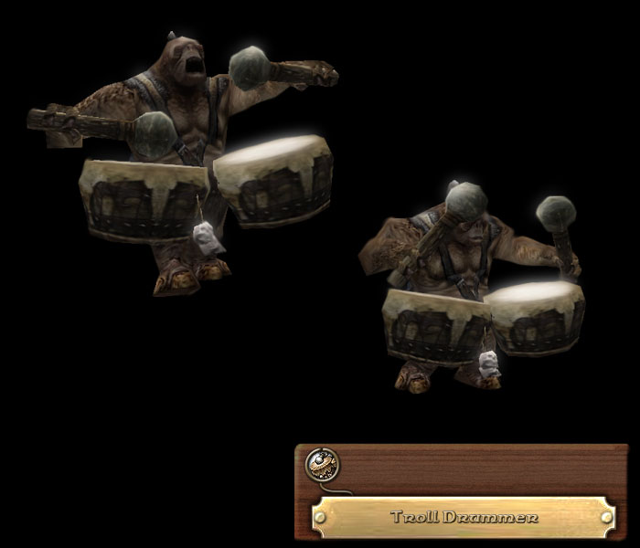 Armies generally employ drummers or musicians to carry a tune or beat out a marching beat. Sauron has taken this even further - his musicians are huge Trolls, single-mindedly beating out the marching pace of the swathes of Orcs as they draw closer the the lands of the Free Peoples.