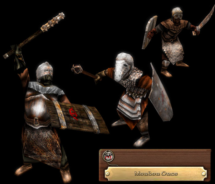 The Orcs of Mordor are the foulest creatures to grace Middle-Earth with their presence. They are inept and cowardly, their armour being crude and pieced together from bits of leather and metal. They rejoice in slaughter, and their weapons little more that butchers' implements. They shy from the light of the sun, preferring to slaughter by moonlight. Alone, they are no match for the warriors of the Free Peoples, but untold thousands make up the legions of Sauron, and it is in these numbers that they march on the Realms of Men.