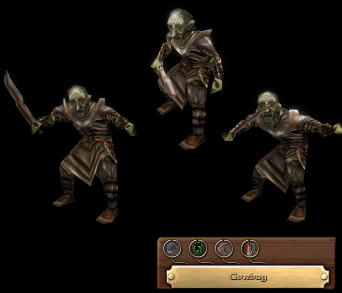 The Captain of the Orcs of Morgul Vale, Gorbag is a fierce Orc of Mordor, his skin turned pale green by the Dead City’s corpse-light. Grasping and deceitful, Gorbag works for the Nazgul of Minas Morgul, though he finds them creepy and disturbing. A veteran of past battles with the armies of Gondor, Gorbag has learned the value of stealth and speed, sneaking behind enemy positions with his broad-bladed knife and delivering a fierce kick to those who come too close. The Orc captain is also a taskmaster and has turned his whipped on many a prisoner numerous times on the slave-fields of Nurn or elsewhere. True to orcish nature, Gorbag covets any items of worth, preferring to take them for himself than to send the inventory to the Dark Tower.