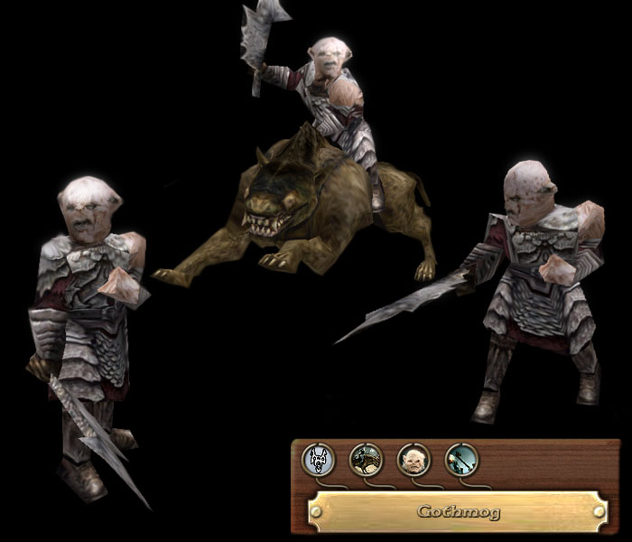 The lieutenant of Minas Morgul, Gothmog is a hideously deformed Orc of considerable rank within the Mordor hierarchy. A vicious fighter and commander, Gothmog is amongst the most trusted servants of the Nazgul, having led the legions of Minas Morgul on numerous successful campaigns along Gondor’s borders. Riding on his personal Warg, Gothmog goads the soldiers of Morgul to battle with startlingly efficient tactics uncommon with orcs, utilizing combat formations and orders that would rival even the White Tower’s finest. His experience as a siege conductor allows the engines of Mordor to be operated to their prime effect, whether they be catapults, siege towers or even the great battering-ram Grond.